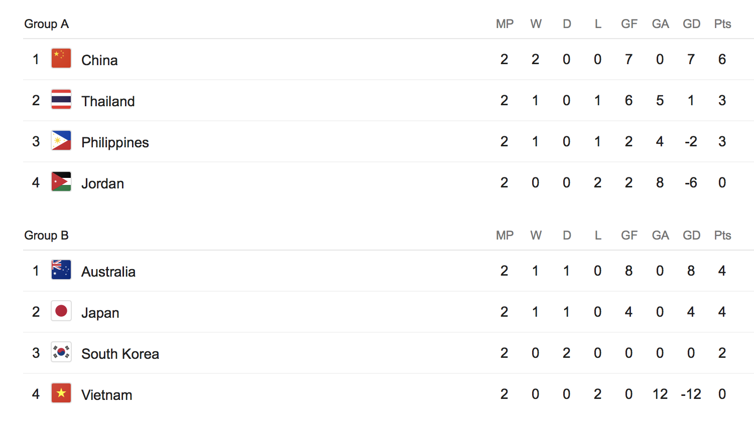 Group C C1 Qatar C2 Japan C3 Yemen C4 IR Iran Group B B1 DPR Korea B2 United Arab Emirates B3 Iraq B4 Vietnam Group A A1 Bahrain A2 Thailand A3 Korea Republic A4 Saudi Arabia Group D D1 Uzbekistan