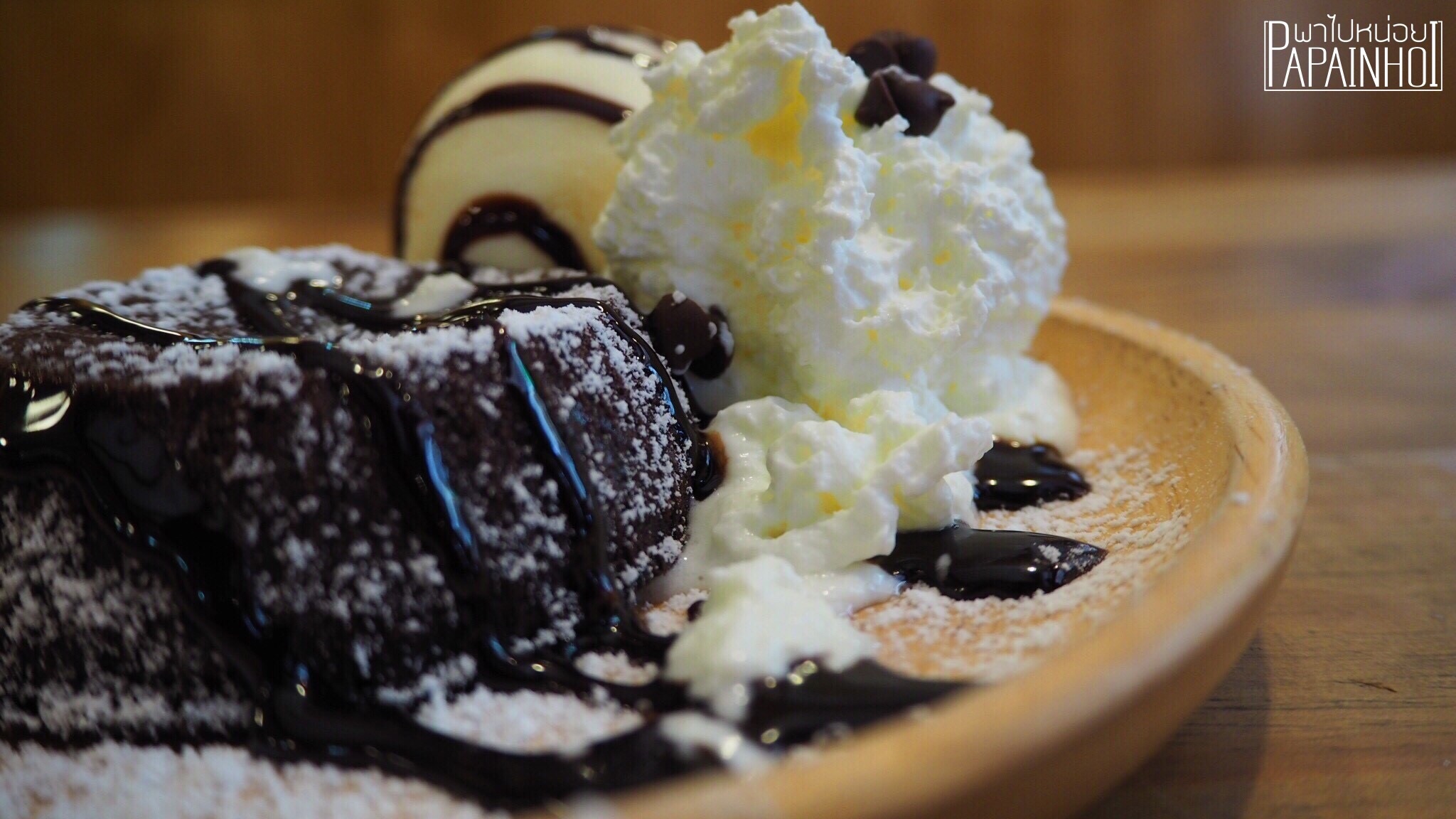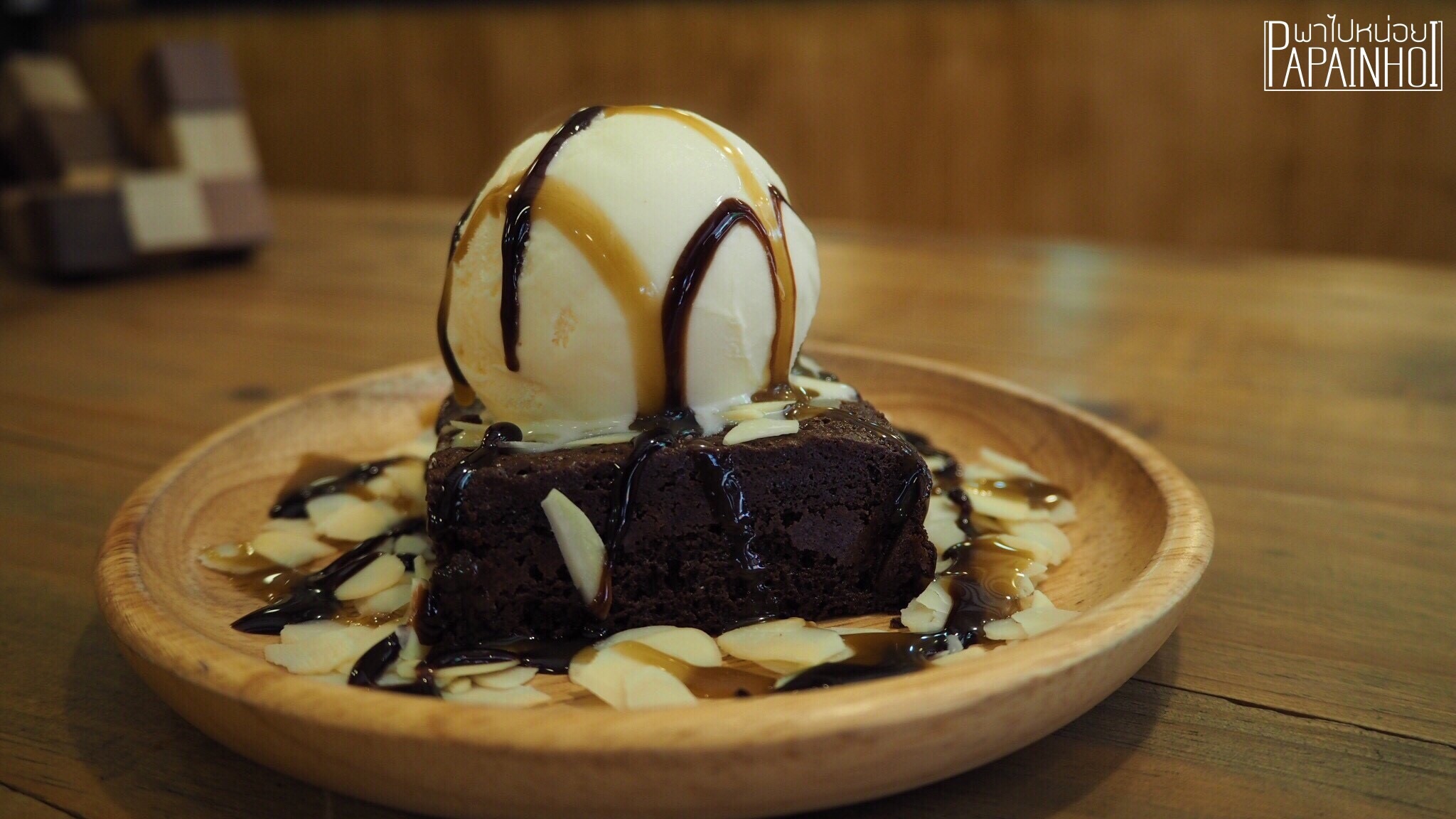 ต่อด้วย Y-Waffle Icecream บาวนี่ช็อกโกแลต ออนท็อปด้วยไอศกรีมวานิลลา บาวนี่คือดีย์~~~ แต่จะบอกว่ากินแล้วอิ่มมาก แบ่งกันกินเป็นแก๊งค์จะดี เพราะถ้ากินคนเดียวเด่วอิ่มก่อนชิมเมนูอื่น 😂