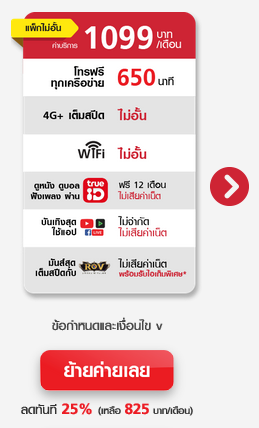 - 4G ที่ความเร็วสูงสุด 300 Mbps. ได้ไม่จำกัด (ไม่ลด Speed) นาน 12 เดือน