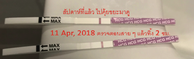 เมื่อวานเราลางาน เพราะเมื่อยตัวมากเหมือนจะเป็นไข้ แล้วก็เพลีย ไม่สดชื่น อาการเจ็บหน้าอก ระบม และปวดท้องก็ยังเหมือนเดิม เลยตรวจอีกที เห็นแว๊บ ๆ ว่าขีดเดียวเลยทิ้งไปอีก แต่พอ 2 ชม.ต่อมารู้สึกตะหงิด ๆ เลยไปคุ้ยขยะ หยิบมาดู เทียบกับของสัปดาห์ที่แล้ว ปรากฎว่าขีดที่ 2 ขึ้นจาง ๆ