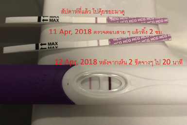 ที่ไม่แน่ใจว่าท้องไหมเพราะ ปกติเราจะมีอาการเจ็บน้าอกและปวดท้องน้อยก่อนที่ป้าแดงจะมาเยือน แต่เมื่อสัปดาห์ที่แล้วเกิดอาการเจ็บหน้าอกแบบระบม แล้วก็ปวดท้องน้อยแบบตุ่บ ๆ ซ้ายบ้าง ขวาบ้าง แล้วก็รู้สึกง่วง ๆ เพลีย ๆ เล่นมือถือตอนค่ำ ๆ ก็สามารถผล็อยหลับได้เลย เรื่องกินนี่ไม่ค่อยผิดสังเกตเพราะเราชอบกินมากอยู่แล้ว เราเอะใจลองไปซื้อที่ตรวจครรภ์มาตรวจขำ ๆ พอตรวจแล้วเห็นขีดเดียวเลยโยนทิ้ง