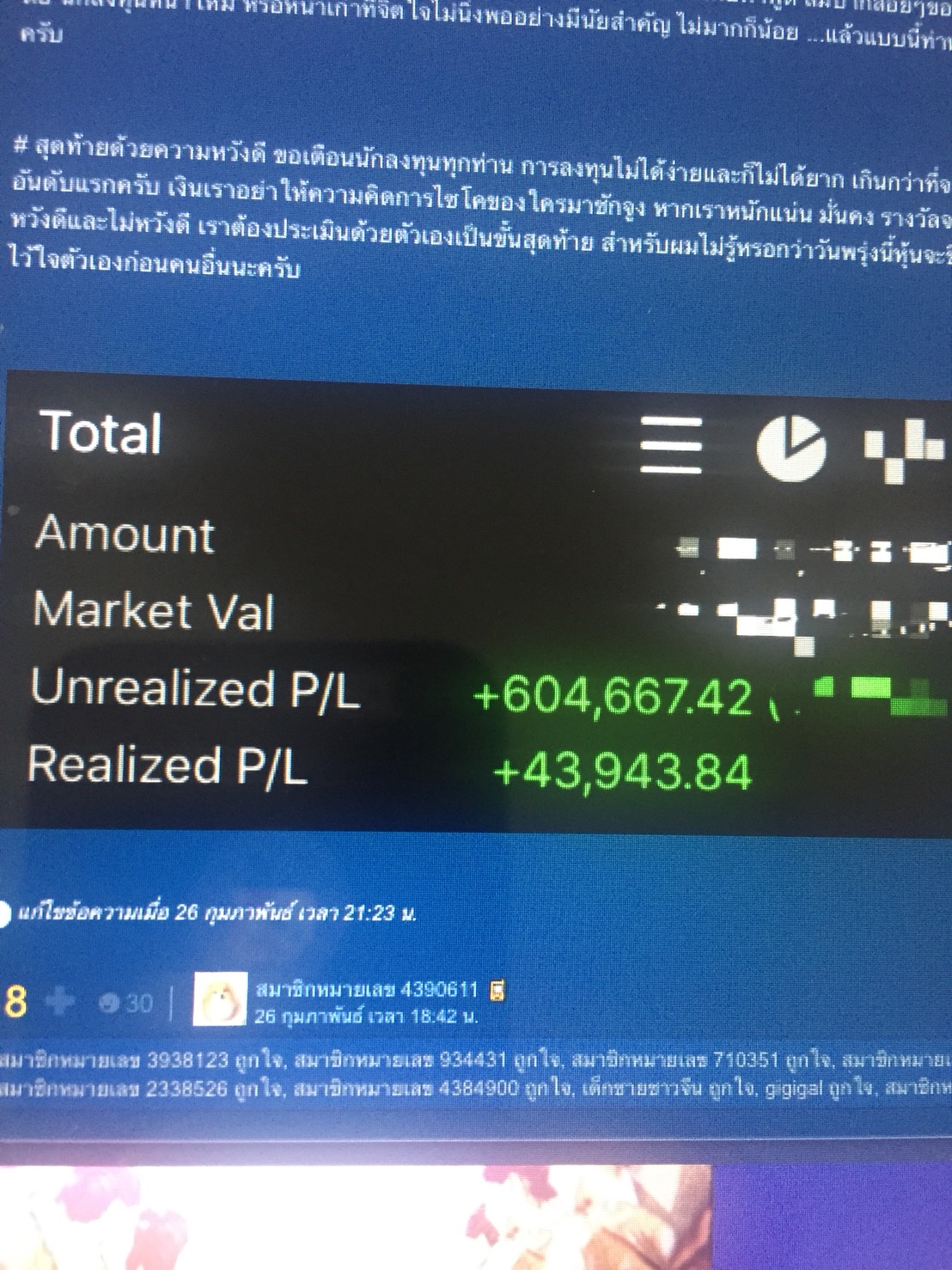 วันที่ 26 กพ เซตอยู่ที่ 1819 พรี่โชวปอด ว่า กำไร 6 แสน