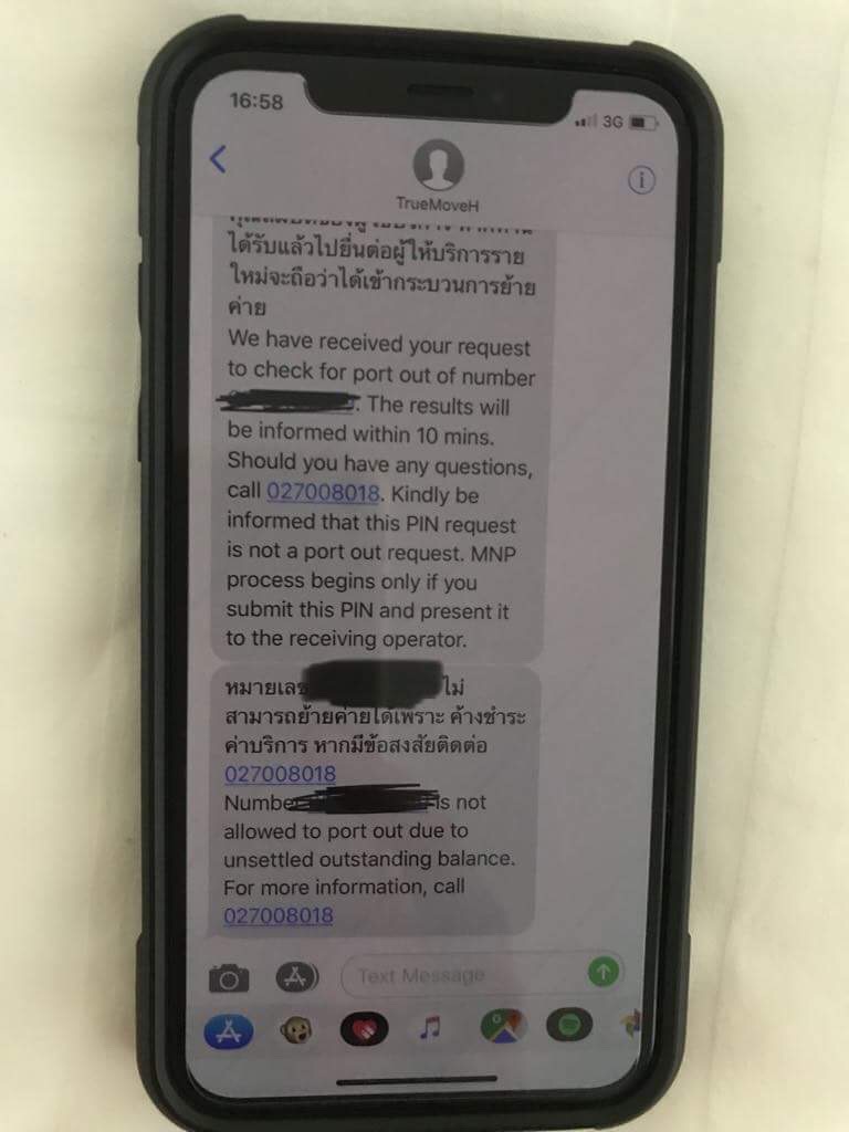 ปัจจุบัน ผมใช้ true ต้องการย้ายออก กดขอรหัสย้ายค่าย *151*เลขบัตรประชาชน# ได้รับsmsว่า ย้ายไม่ได้เนื่องจากค้างชำระค่าบริการ