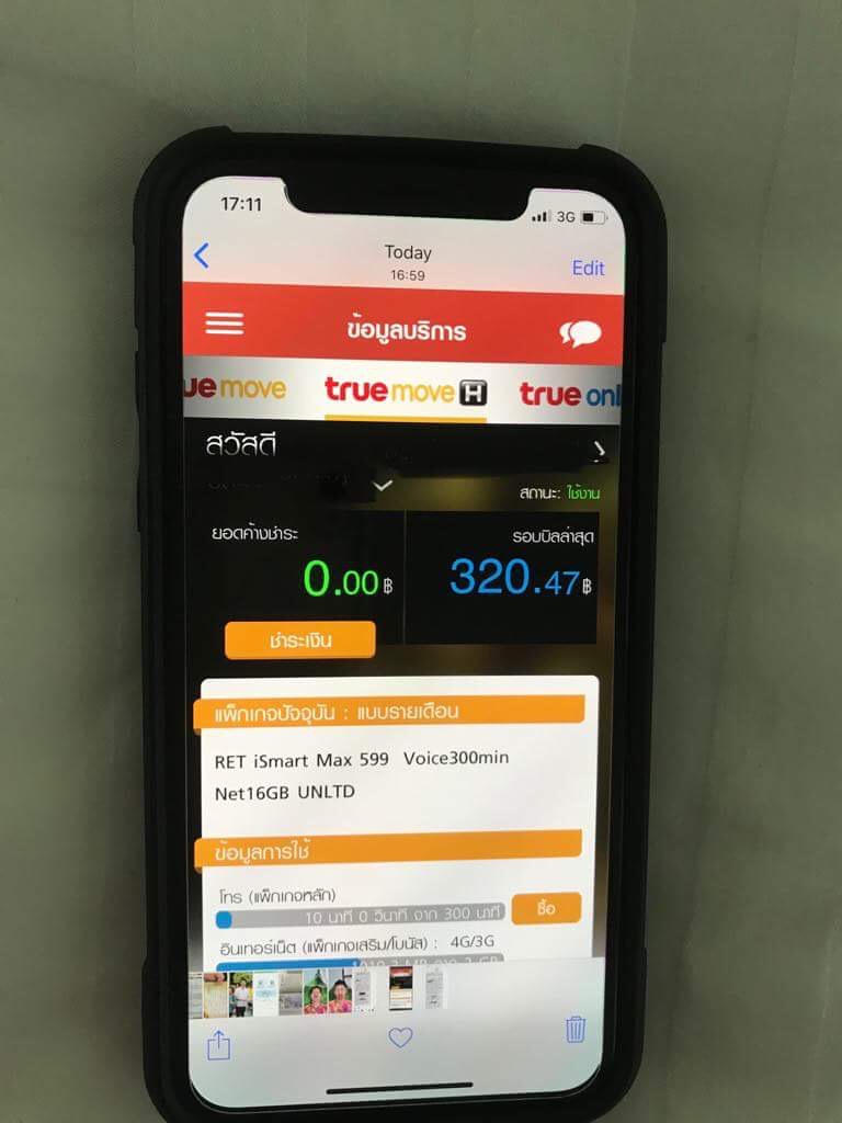 โปรย้ายค่ายของเราจะหมด เลยไปจ่ายค่าบริการที่ค้างทั้งหมด แล้วกด *151* ผลที่ได้คือ วันที่ 5/05/2017 แจ้งว่าค้างค่าบริการ 996.17 ฿ ทั้งที่โปรเราที่ใช้อยู่คือ 199.50 ฿ หลังจากนั้นเราโทรไปหา 1175, CC แจ้ง