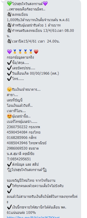 ระวัง พวกหลอกลวง เดี๋ยวนี้หากินกันหลายรูปแบบ เจอเห็นในกลุ่มไลน์ตั้งกันหลายๆห้อง เลย อดเอามาเตือนบอกต่อๆกันไม่ได้ เดี๋ยวนี้ยังมีคนหลงเชื่อพวกนี้กันมิใช่น้อย ช่วยกันเตือนๆเพื่อนๆ ญาติ ที่รู้จักอย่าเห็นแก่เงินที่ไม่มีวันจะได้มาง่ายๆ