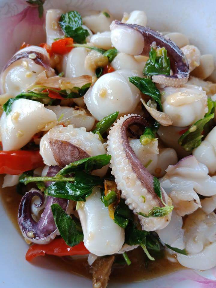 หนวดหมึกผัดกะเพรา หรือ กะเพราหนวดหมึก
