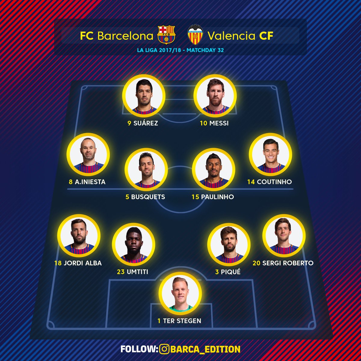 https://www.whoscored.com/Matches/1222237/Live/Spain-La-Liga-2017-2018-Barcelona-Valencia https://youtu.be/OWkTpFSe2gM https://youtu.be/fcR9Iaaz5oQ https://youtu.be/Pexfe9mKAlQ