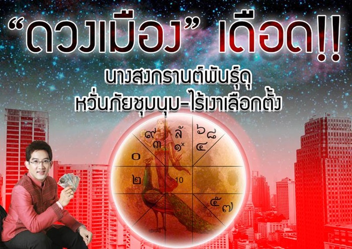 โหด!! “นางสงกรานต์” ปีนี้กินเนื้อ ยืนมาบนหลังนกยูง ส่อแววประชาชนตื่นรู้ ลุกขึ้นชุมนุมประท้วง เสี่ยงเกิด “ภัยกลางเมือง” อาจเพราะไร้เงา “เลือกตั้ง” ทำนายผู้ใหญ่ในบ้านเมืองมีโผโยกย้าย ปรับกระบวนบริหารกันเป็นการใหญ่ แต่ผู้ปกครองใหญ่ยังคงสวมชุดราชการ ย้ำหนักให้ “ผู้คุมเกมการเมือง” มีคุณธรรม เพื่อปราบภัยคุกคามแอบอ้าง และพาเศรษฐกิจให้เดินหน้าประเทศไทย!!