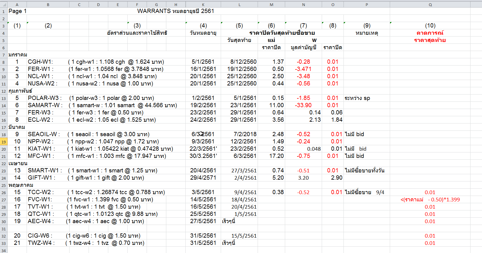 tvt-w1  : เหลือเวลาซื้อขาย 4 วันทำการ (17 - 20/4/2561) น่าจะจำได้ tvt-w1 จ้าวทำเจ็บปวดต่อเม่าเข้าตลุมบ่อนลากตัวแม่ถึง 1.97 บาท สูงกว่า