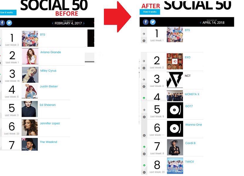Kpop หลายๆวงก็เข้าไปติดชาร์ต Billboard social 50 กันเยอะ จากที่เมื่อก่อนมีน้อยมากที่เข้าไปติดชาร์ตนี้กัน