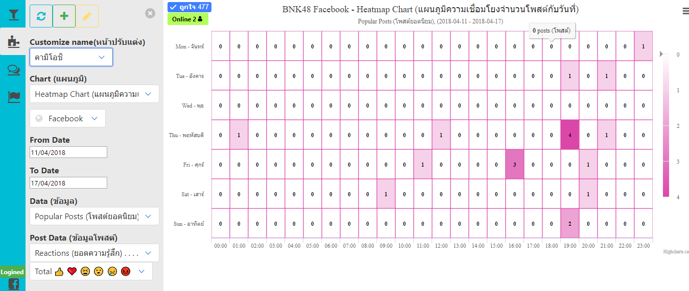 ตามรูปตัวเลขที่ขึ้นคือ จำนวนโพสต์ ที่สมาชิกโพสต์ในช่วงเวลานั้นๆของวันนั้นๆ(จันทร์-อาทิตย์) ตัวอย่างรูป