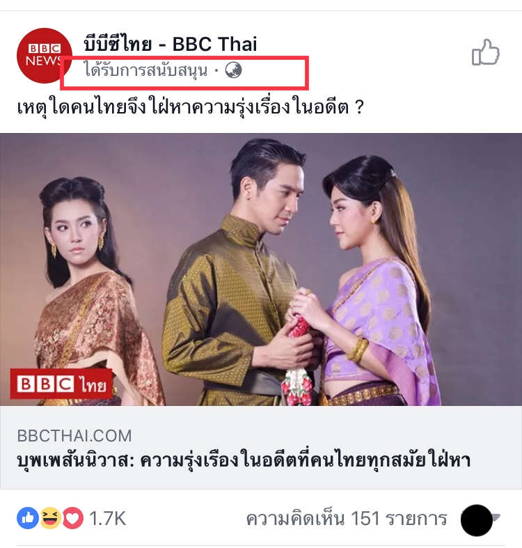 BBC เขียนบทความเกี่ยวกับละครบุพเพสันนิวาส แถมนำไปใช้โฆษณาฝ่านFacebook