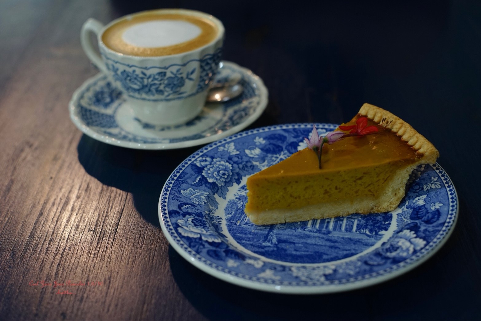 ดอกไม้ที่แถมมาบนพายฟักทองสวยดีครับ ชอบเป็นการส่วนตัว