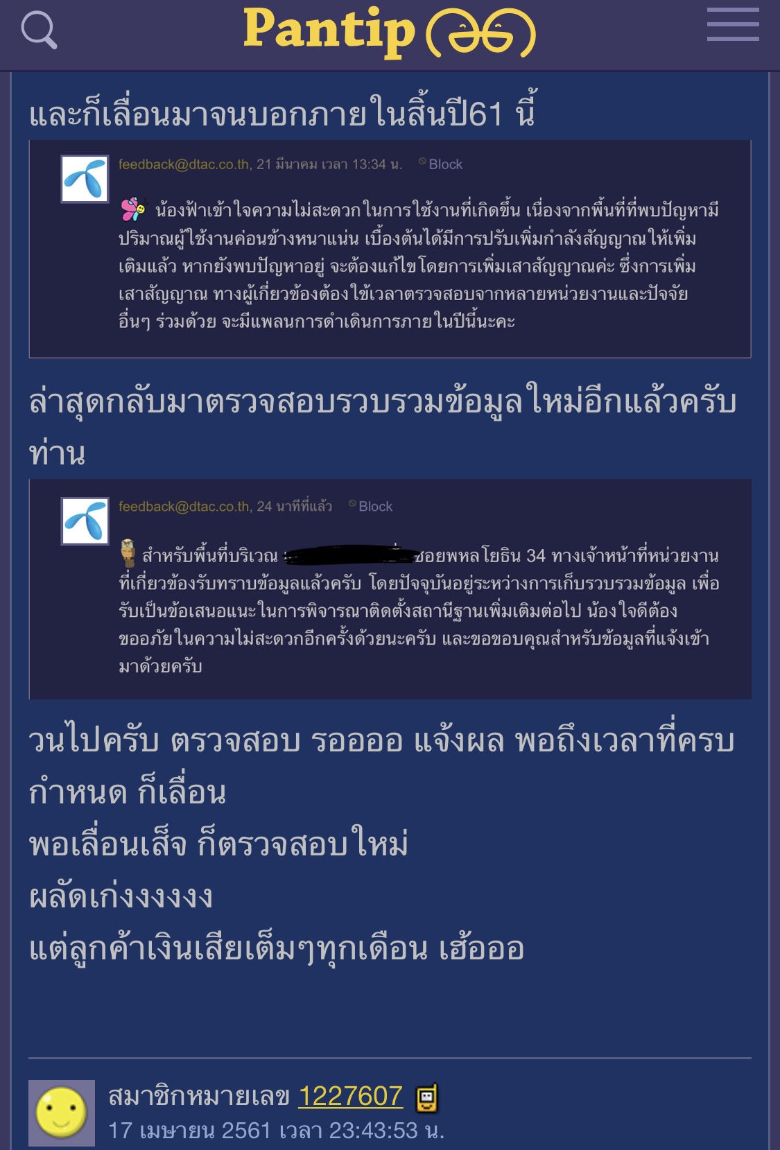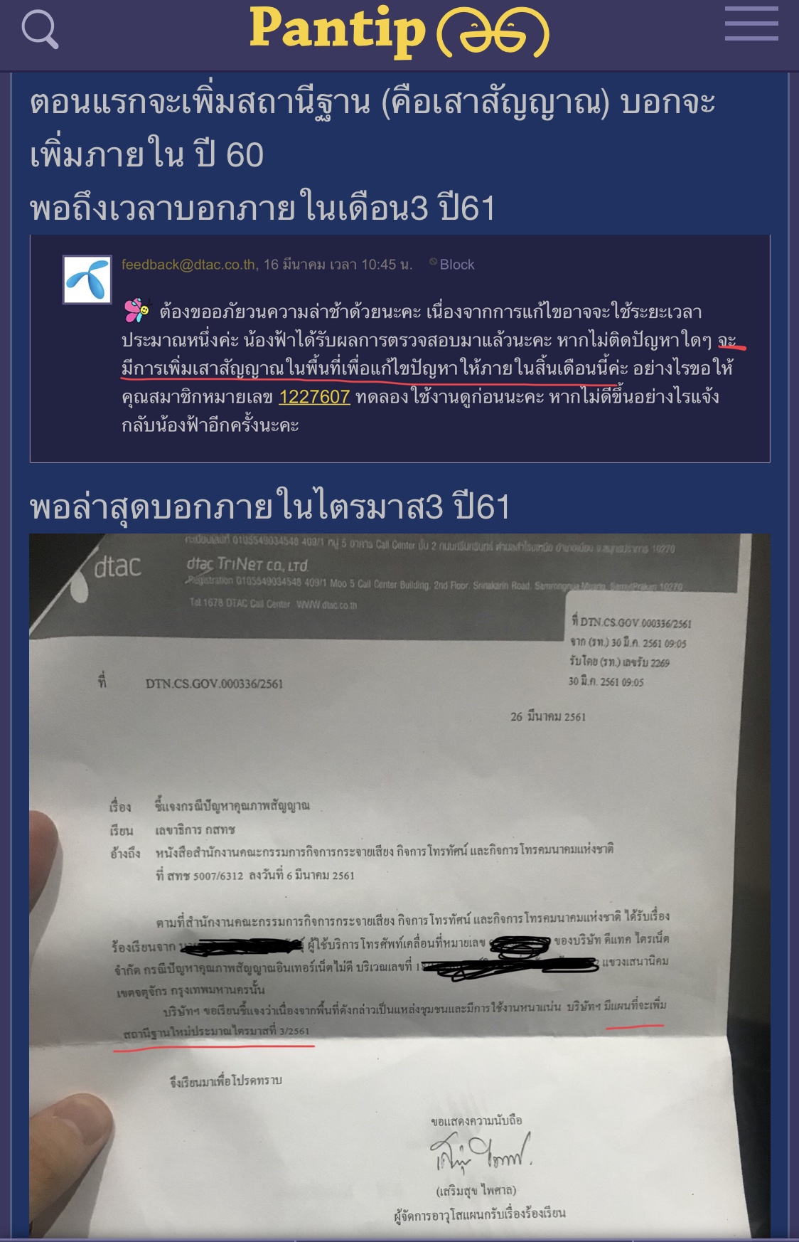 แต่นี่มันมีปัญหาสัญญาณ และแจ้งไปเป็น100รอบ นานเป็นปีๆแล้ว ก็ไม่แก้ให้หลอกว่าจะแก้ๆ แบบนี้ตลอดเวลา