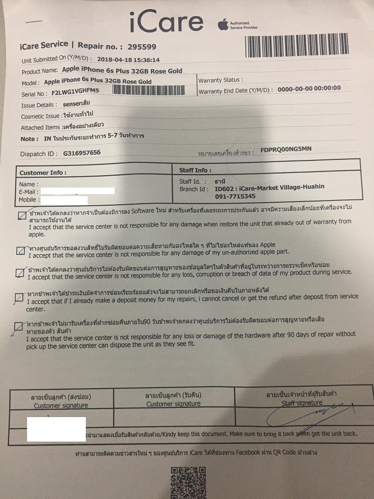 ด้านล่างคือหลักฐาน ใบเสร็จ กับใบแจ้งซ่อมครับ