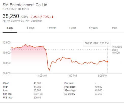 *** จากข่าวนี้ ทำให้หุ้นของบริษัท SM Entertainment ล่วงสูงสุดกว่า 11%