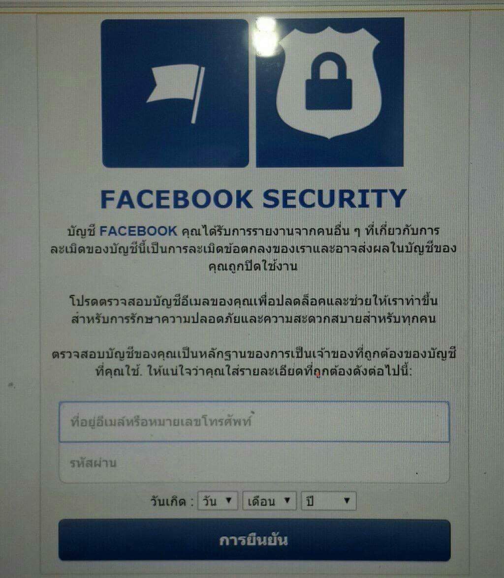 หรือรหัส เขาทำขึ้นมาเพื่อขโมยข้อมูล facebook จะเปิดไม่ได้