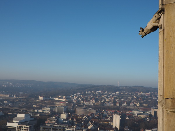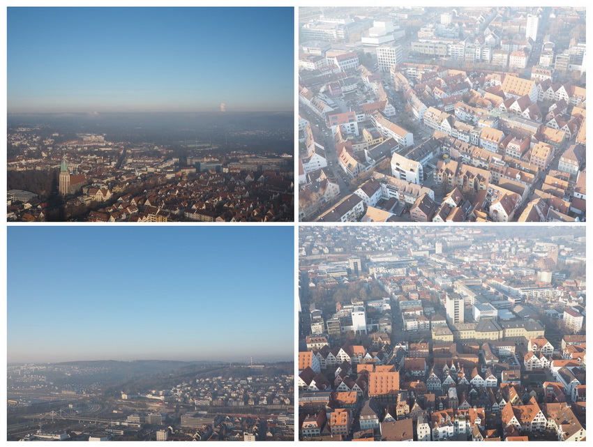 วิวจากชั้นบนสุด เห็นว่าในวันที่อากาศแจ่มใสจะมองเห็นแอลป์ของสวิสเลย ส่วนบันได เราไม่ได้นับว่ามีกี่ขั้น แต่ไกด์บุคบอกว่ามีทั้งหมด 768 ขั้น แล้วก็แม่น้ำที่เห็นในภาพคือแม่น้ำดานูบ มีต้นกำเนิดอยู่ในป่าดำ และจะไหลผ่านอีกหลายประเทศไปจนถึงทะเลดำ