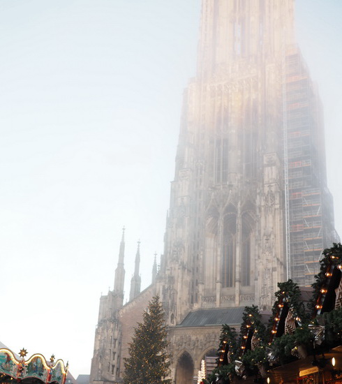 วิหารอูล์มกับหมอกและตลาดคริสต์มาส