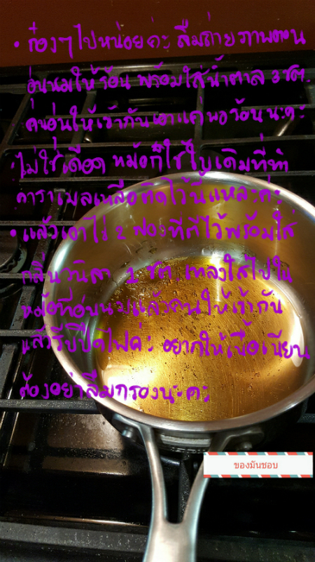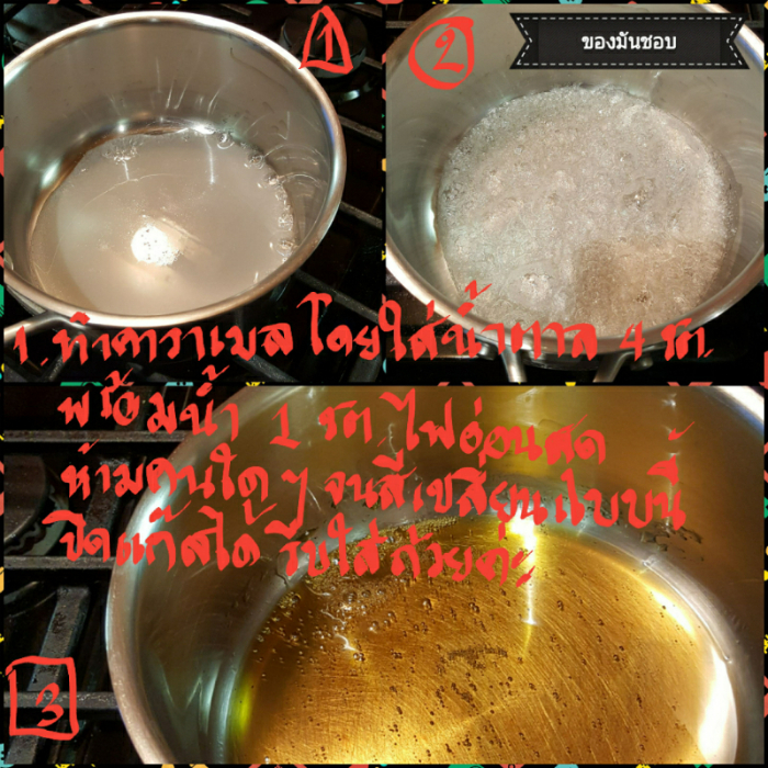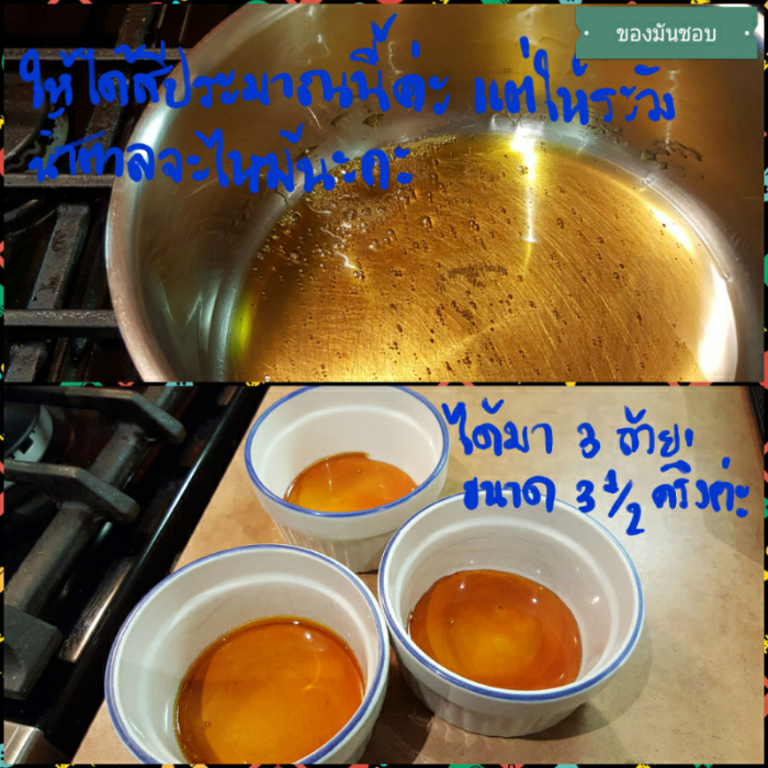 มีแค่ 2 อย่างที่ต้องระวังคือ 1.คาราเมลไหม้ค่ะ ต้องคอยดูดีๆ ค่ะ เพราะถ้ารอให้สีคาราเมล