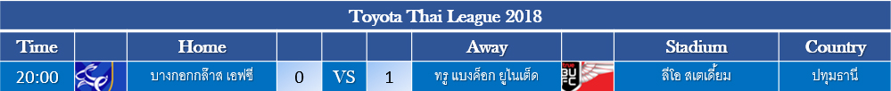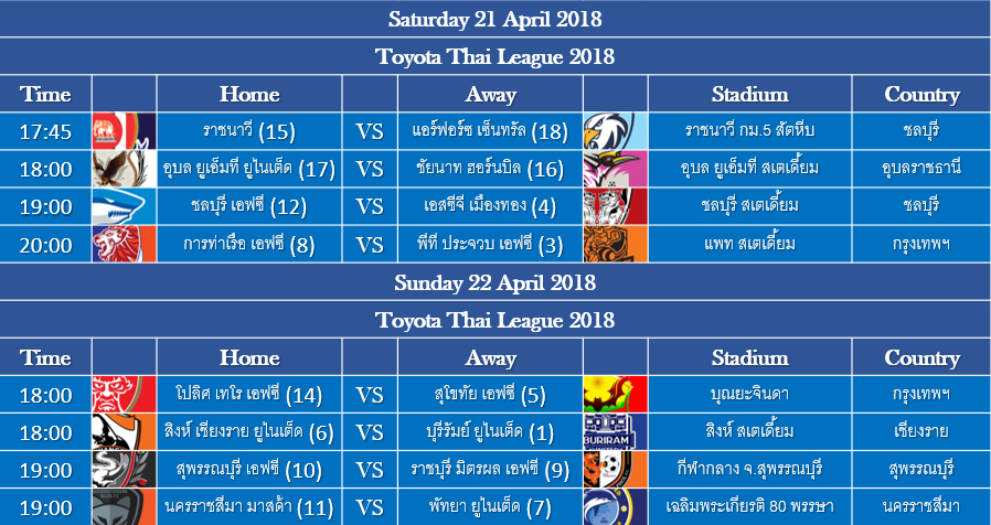 สรุปผลฟุตบอล ไทยลีก 2018 ประจำวันศุกร์ที่ 20 เมษายน 2561 พร้อมตารางคะแนน