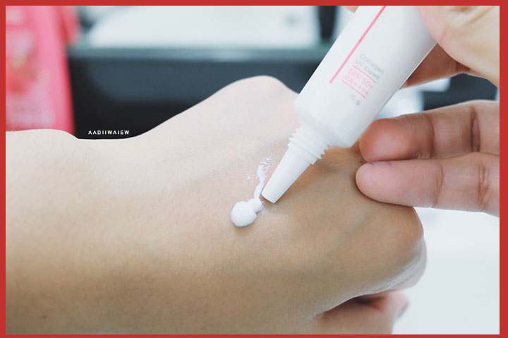เนื้อครีมเป็นสีขาวข้นค่ะ เมื่อเกลี่ยแล้วเค้าเนียนกลืนไปกับผิวเราเลยค่ะ ไม่ทิ้งความขาววอกเอาไว้ แต่ทำให้ผิวดูกระจ่างใสขึ้นนิดนึงค่ะ แต่ก็ไม่ได้ชัดขนาดนั้นนะคะ แล้วก็ไม่หนักผิวเลยยยยยนะคะ