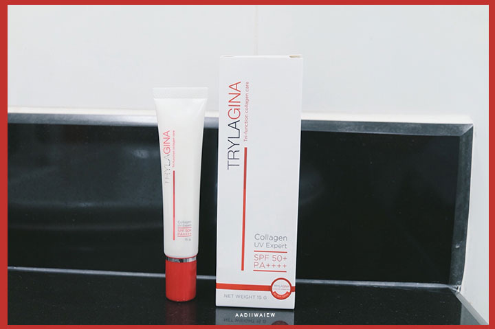 Trylagina Collagen UV Expert SPF50+ PA++++ ตัวนี้ก็เป็นครีมกันแดดที่อิ๋วสนใจ และเลือกมาลองใช้ค่า เค้าบอกว่าเป็นครีมกันแดดสูตรปกป้องพร้อมบำรุงผิว ที่ช่วยปกป้องผิวได้ถึง 50 เท่ากันเลย แถมยังสามารถปกป้องผิวสวยๆของเราได้ทั้งรังสี UVA/UVB/UVA1 เลยค่ะ ที่สำคัญคือ มีสารบำรุงอยู่ในตัวด้วย ซึ่งก็คือส่วนผสมจาก Hydrolyzed Collagen นั่นเอง ตัวนี้จะช่วยในเรื่องของทำให้ผิวเนียนนุ่มชุ่มชื่น แล้วก็เปล่งปลั่งกระจ่างใส ค่า เหมาะกับสาวขี้เกียจแบบเรามากๆอ่ะ