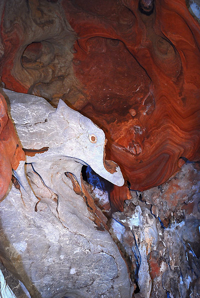 อันนี้เป็นสิ่งมหัศจรรย์ของถ้ำพุงช้าง คือมีทั้งหินปูนขาว-แดง ผสมผสานจนเป็นช้าง ไม่มีการเติมแต่งค่ะ