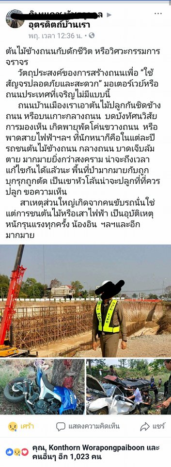 เรื่องมีอยู่ว่า มีนายตำรวจ(ระดับสูงมาก)ท่านหนึ่งในจังหวัดอุตรดิตถ์ รณรงค์ให้ตัดต้นไม้ข้างทางออกให้หมดเพื่อลดการเกิดอุบัติเหตุ ???? (ใช่เหรอ)