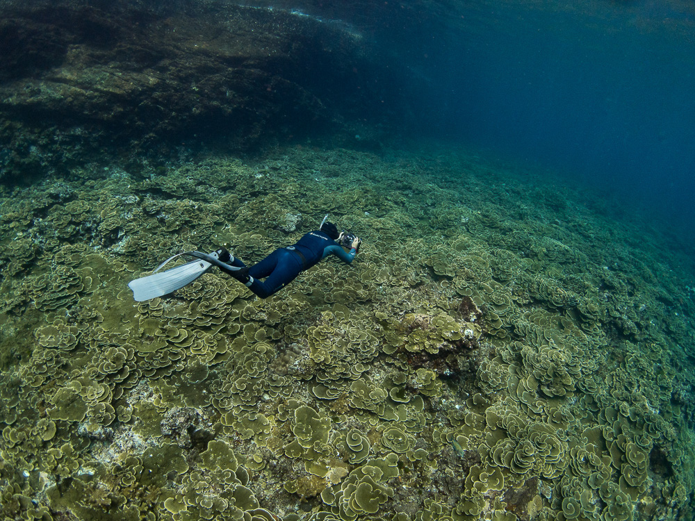 อุปกรณ์กล้องใต้น้ำที่เหมาะกับการดำน้ำตัวเปล่าควรมีขนาดไม่ใหญ่จนเกินไปน้ำหนักใต้น้ำไม่มากผมจึงใช้แค่กล้องใส่ในเคสกันน้ำและมีเลนส์มุมกว้างแบบต่อภายนอกเคสกันน้ำช่วยให้ได้รูปมุมกว้างเพียงพอ