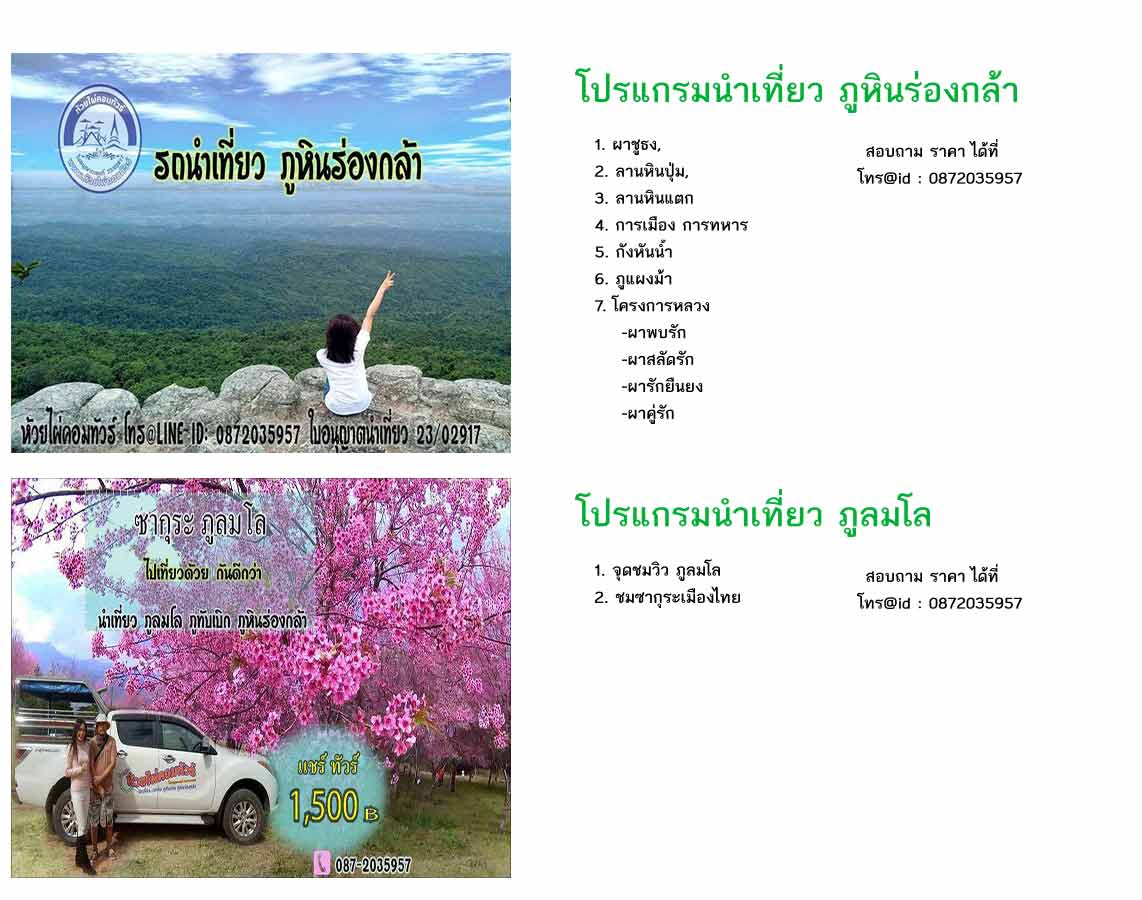 เข้าอ่านข้อมูล เว็บ รถนำเที่ยวเขาค้อ ภูทับเบิก ภูหินร่องกล้า ที่นี้เลย