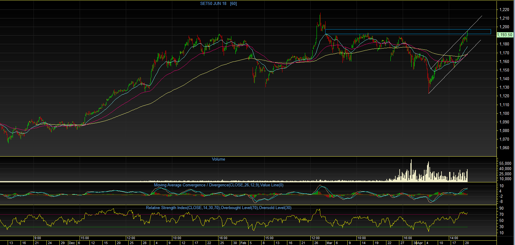 S50M18 TF 60Min : ตลอดทั้งสัปดาห์ที่ผ่านมา ดัชนีฟื้นตัวขึ้นได้อย่างต่อเนื่อง และ ร้อนแรง ในรูปแบบ V shape จนสามารถปิด Gap บริเวณ 1195