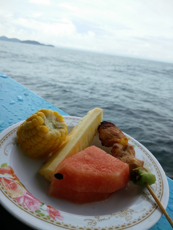 อาหารว่างบนเรือค่ะ (ส่วนอาหารคาวไม่ได้ถ่ายไว้ เป็นพวกกับข้าวง่ายๆ แต่รู้สึกอร่อยมากเลยนะ เช่น เขียวหวานไก่ ไข่เจียว เค้าหุงกันร้อนๆบนเรือเลย)