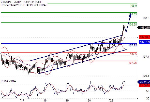 จุดที่ต้องการ: สถานะซื้อสูงกว่า 107.75 เป้าหมายต่อไปที่ 108.35 และ 108.65