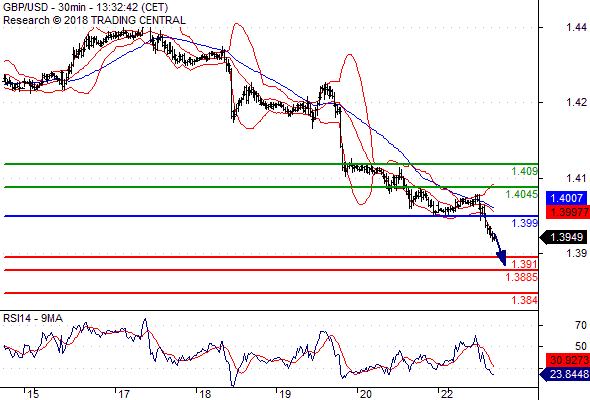 จุดที่ต้องการ: สถานะขายต่ำกว่า 1.3990 เป้าหมายต่อไปที่ 1.3910 และ 1.3885