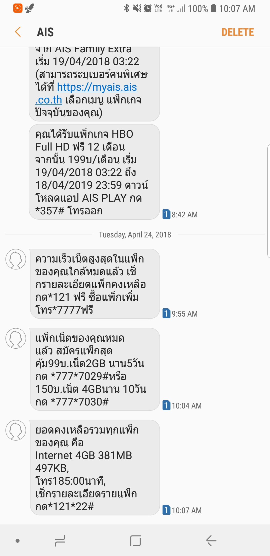 สอบถามครับ มี SMS แจ้งว่า Package เน็ตหมดและตอนผมดู NBA อยู่เน็ตก็ดับลง พอมาเช็คยอดก็ยังเหลือ 4GB อันนี้แปลว่ายังไงครับ