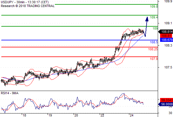 จุดที่ต้องการ: สถานะซื้อสูงกว่า 108.50 เป้าหมายต่อไปที่ 109.00 และ 109.40