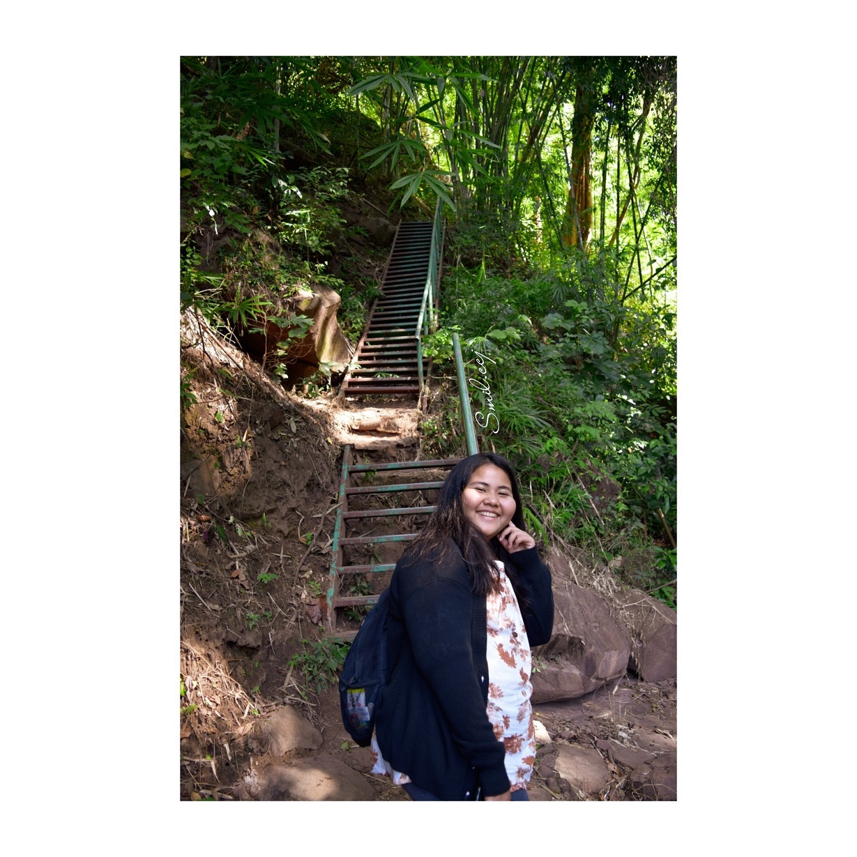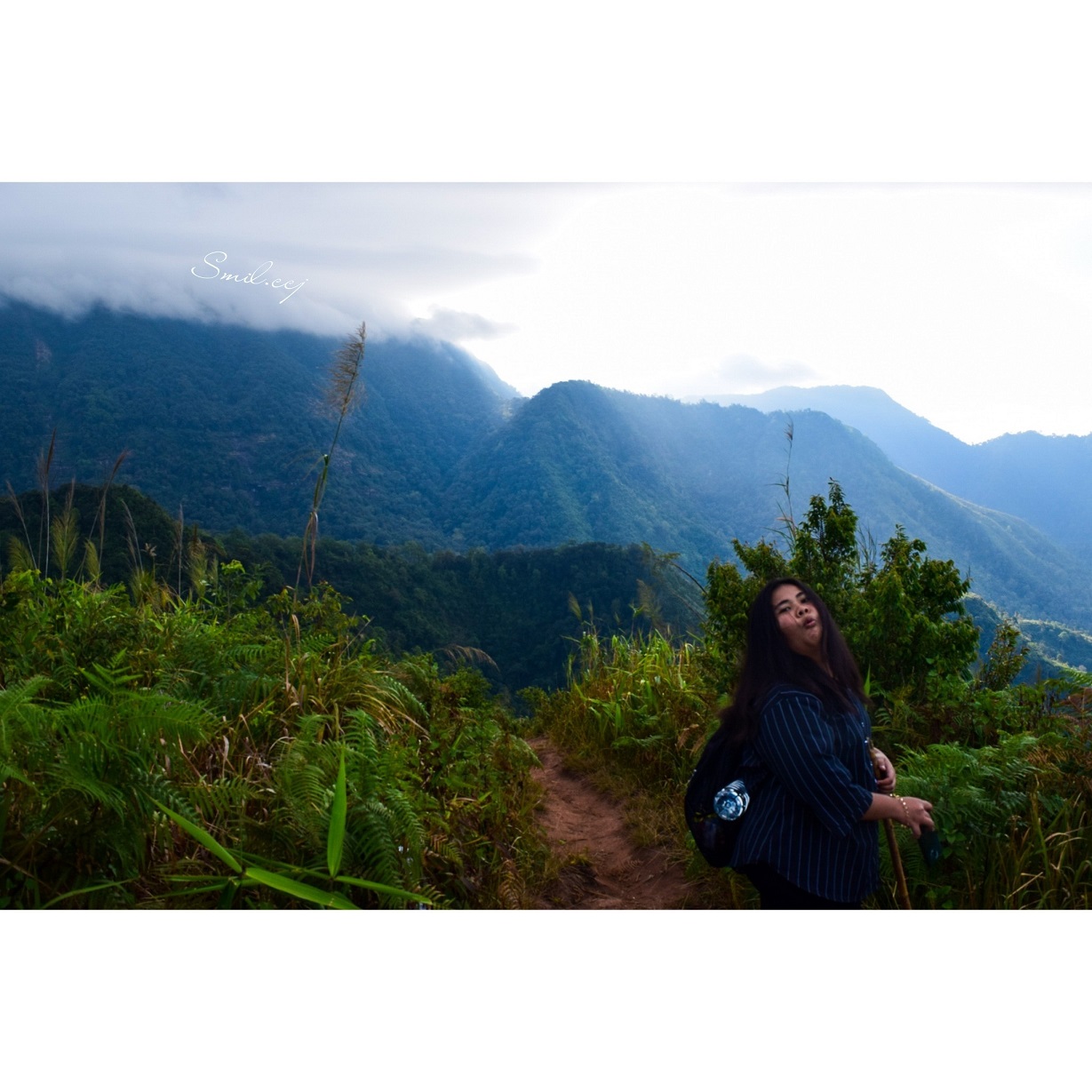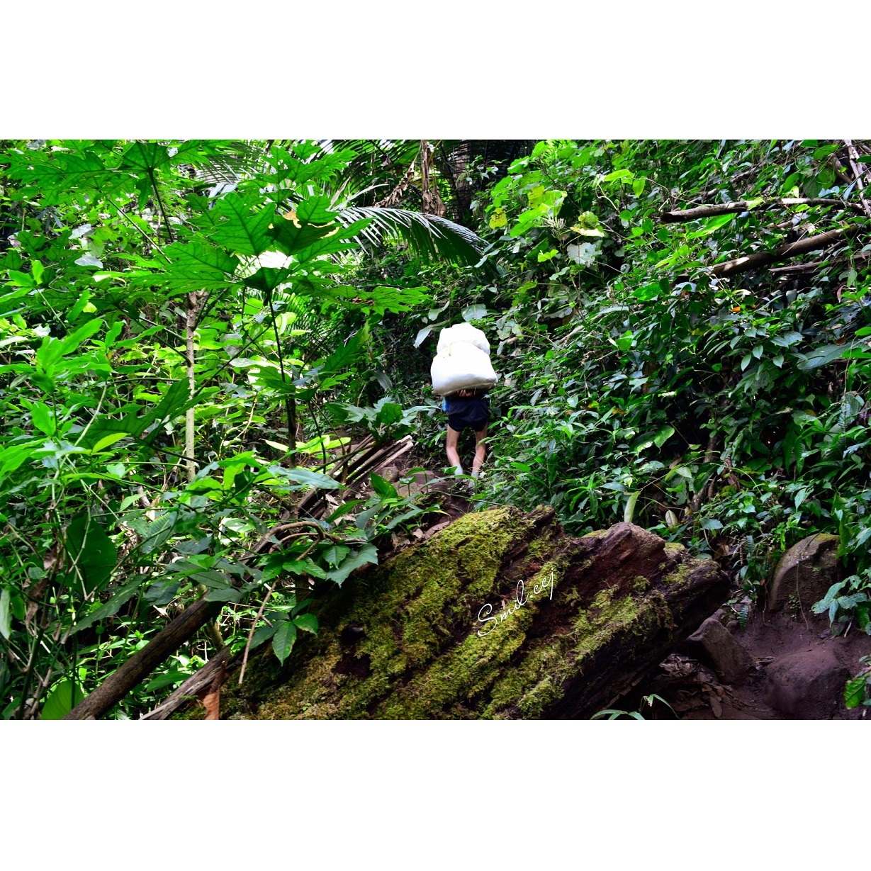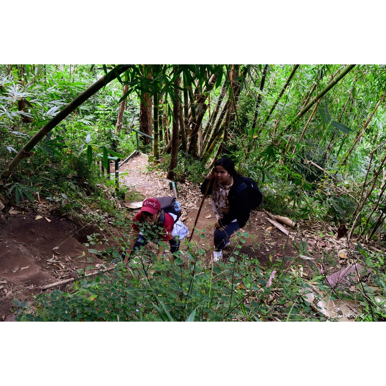 ด้านหลังคือคุณลุงลูกหาบที่ขึ้นมาหลังเรา 2 ชั่วโมงกว่า ใช่ค่ะ เราเดินกันมา 2 ชั่วโมงกว่าแล้ว โดยที่เราไม่รู้เลยว่ามันอีกใกลไหม ข้างหน้าทางจะเป็นยังไง(แต่เรารู้สึกว่ามันคือเสน่ห์อย่างหนึ่งของการออกเดินทางไปยังที่ใหม่ๆ) ระหว่างที่เราเดินขึ้น ก็จะมีหลายๆคนที่กำลังลง