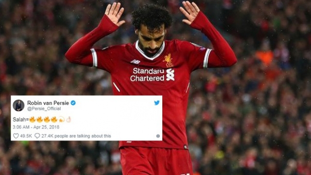 ซาลาห์ ทำผลงานสุดยอดยิงคนเดียว 2 ประตูและจ่ายอีก 2 ลูก ช่วยให้ ลิเวอร์พูล มีโอกาสสดใสที่จะเข้ารอบชิงชนะเลศ และเวลานี้ก็ซัดไปแล้วถึง 43 ประตู จน ฟาน เพอร์ซี่ ถึงกับทวีตยกย่องดาวเตะอียิปต์ เป็นอีโมจิรูปไฟ ซึ่งหมายถึงโชว์ฟอร์มได้ร้อนแรงสุดๆ