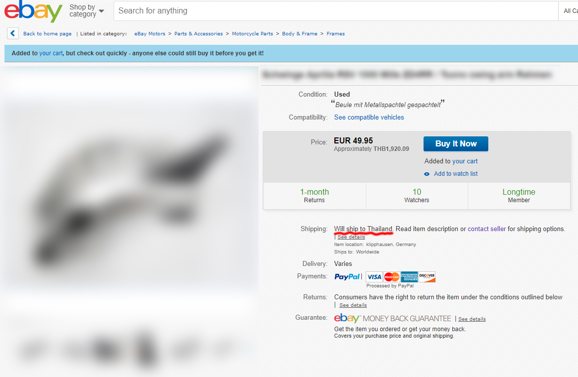 ผมมือใหม่ครับ อยากซื้อของใน eBay แต่คนขายไม่ได้ระบุค่าส่งมาไทย ระบุแค่ "Will ship to Thailand"