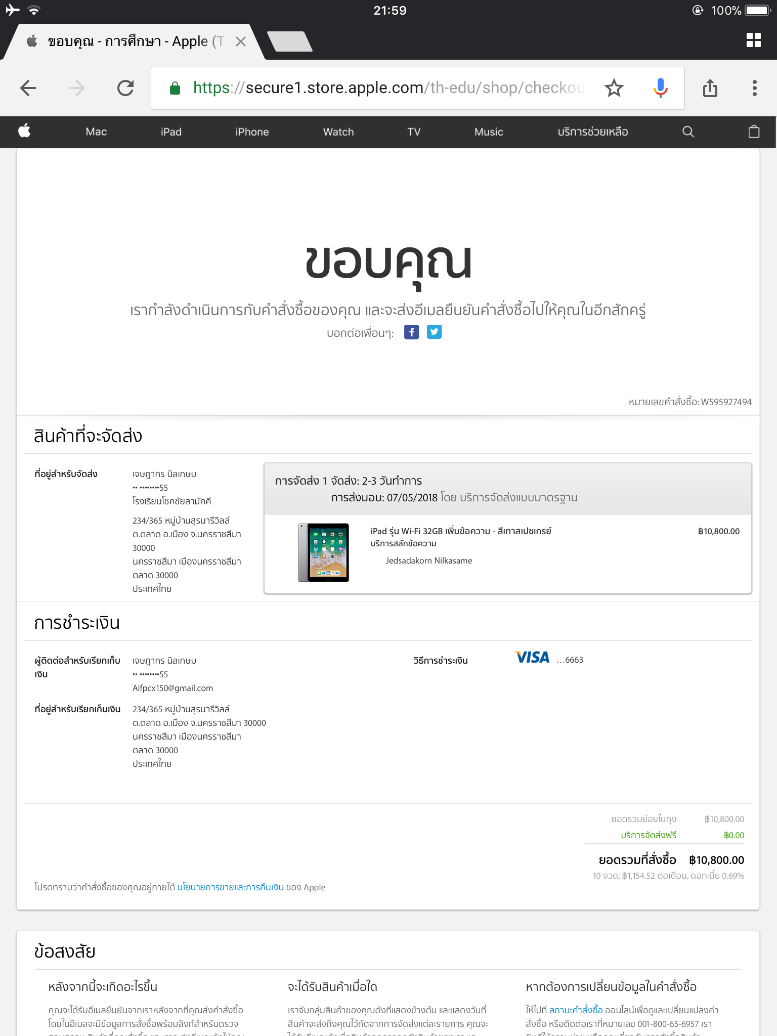 ผมกดสั่งซื้อ ipad 2018ราคานักศึกษาครับ แล้วผมมีสองคำถาม ที่จะถามพี่ๆในพันทิป