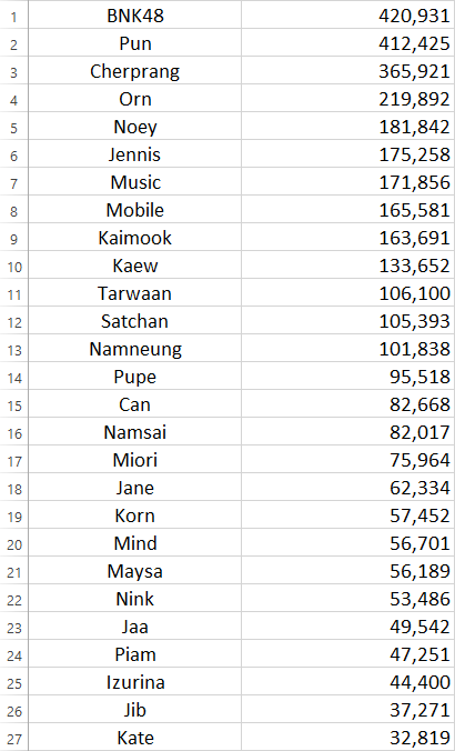 ยอดต่างๆ ของBNK48 ในSocial Network เดือนเมษายน