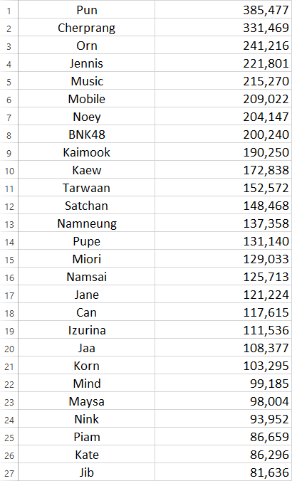 ยอดคนติดตามในแอพVOOV (ข้อมูล ณ วันที่ 28 เมษายน 61)