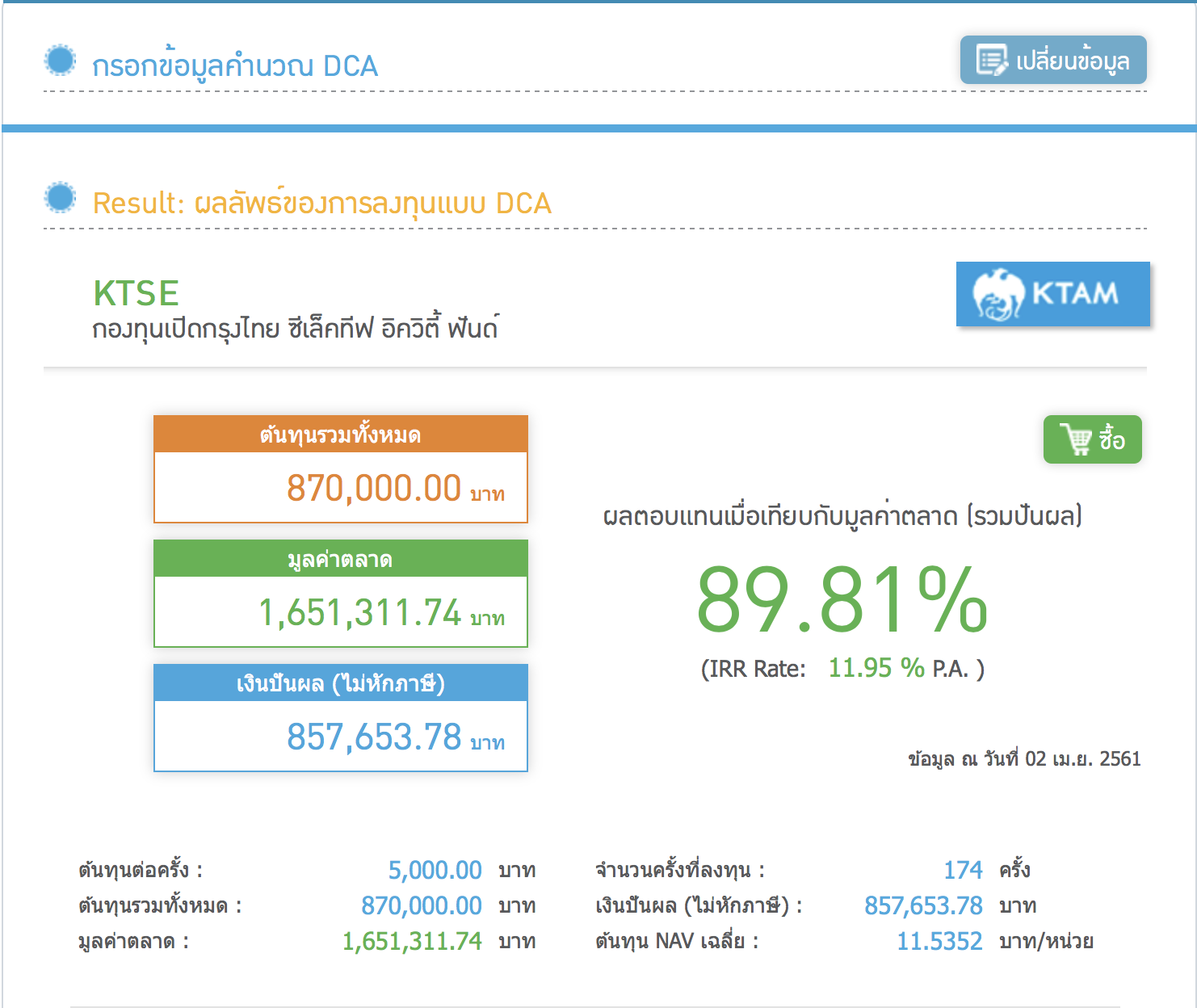 กองทุน KTSE ซื้อ 5,000 บาททุกเดือนตั้งแต่วันที่ 3 พ.ย. 46 - 1 เม.ย. 61 ตามรูปภาพเมื่อได้ปันผลมาจะไม่ได้นำไปซื้อเพิ่มใช่ไหมครับ