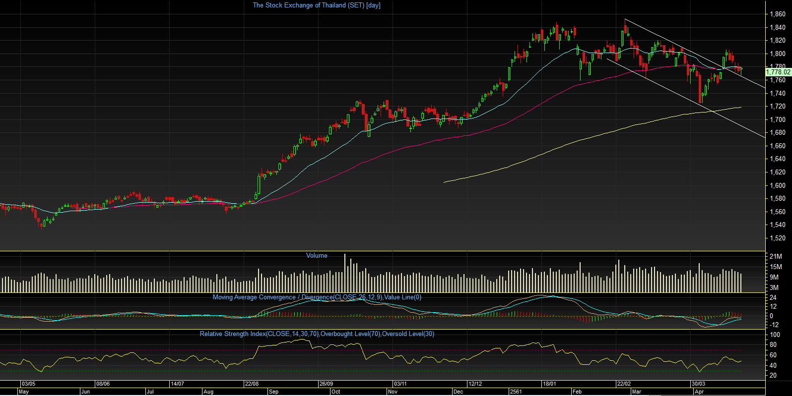SET index TF Day: ตลอดทั้งสัปดาห์มี่ผ่านมา ดัชนีเคลื่อนไหวแกว่งตัวในเชิง Sideway Down ภายหลังจากไม่สามารถขึ้นไปยืนเหนือ 1800 จุดได้