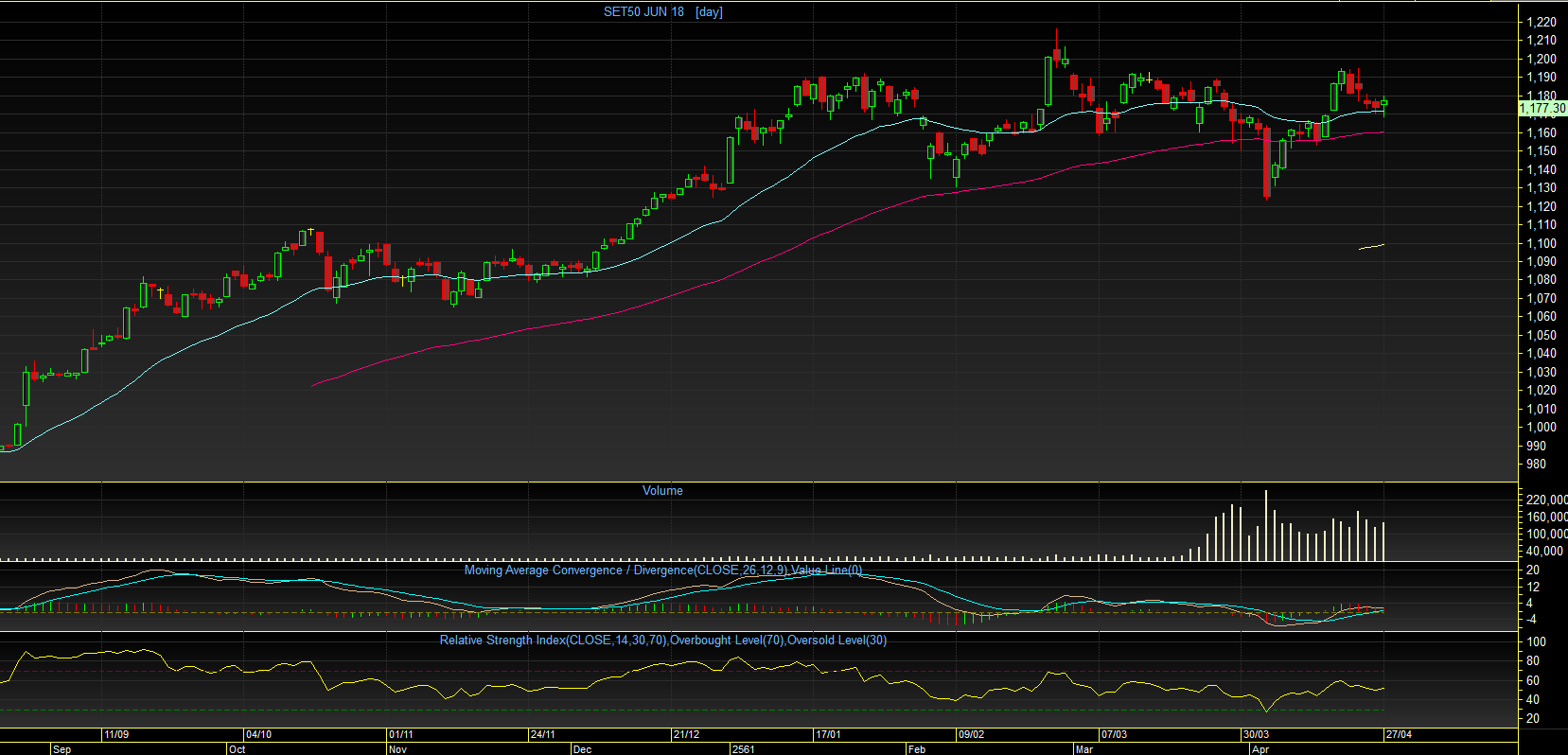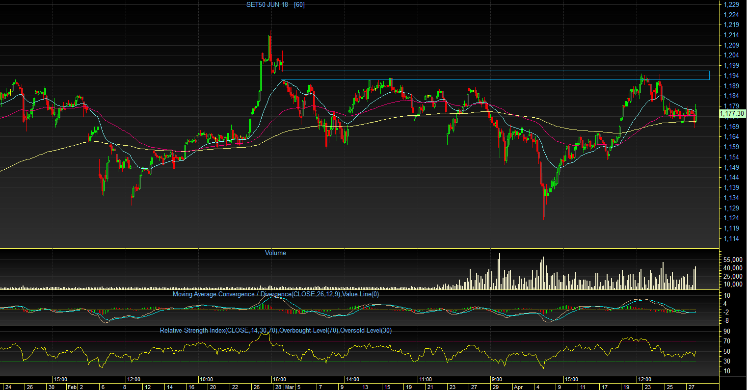 S50M18 TF Day : ตลอดทั้งสัปดาห์ก่อน ดัชนีเคลื่อนไหวแกว่งตัวในเชิง Sideway Down  ภายหลังจากไม่สามารถขึ้นไปยืนเหนือระดับ 1200 จุดได้