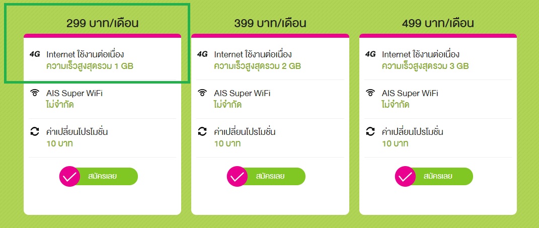 AIS 299 บาท ความเร็วสูงสุดรวม 1GB