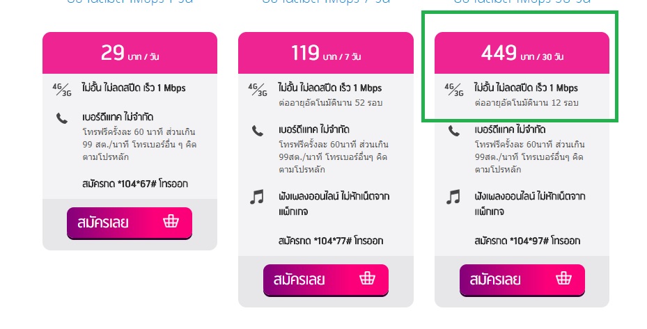 DTAC 449 บาท ความเร็วไม่ลดสปรีด 1 Mbps