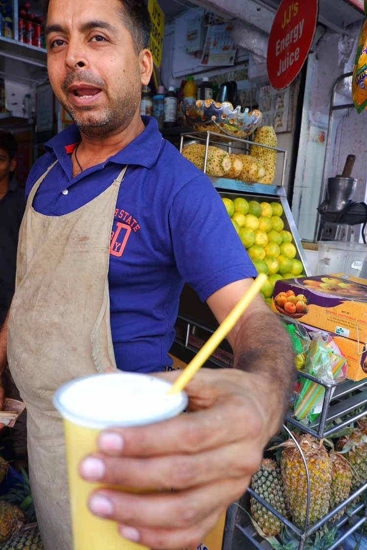 17.ก่อนมาเพื่อนๆบอกว่า ห้ามกินน้ำก๊อก มะนาวโซดาก็ห้ามกิน เสี่ยงท้องเสีย ด้วยความอยากกิน เลยลองทุกอย่างที่ห้าม น้ำสับปะรดคั้นสดเจ้านี้ อร่อยฮิปหายคนขายเป็นมิตร ให้ลองชิมมะพร้าวอินเดียอีกแก้ว