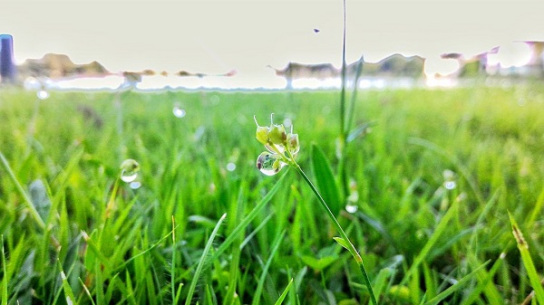 ยอดหญ้าแย้มแต้มน้ำค้างพร่างพราวสวย